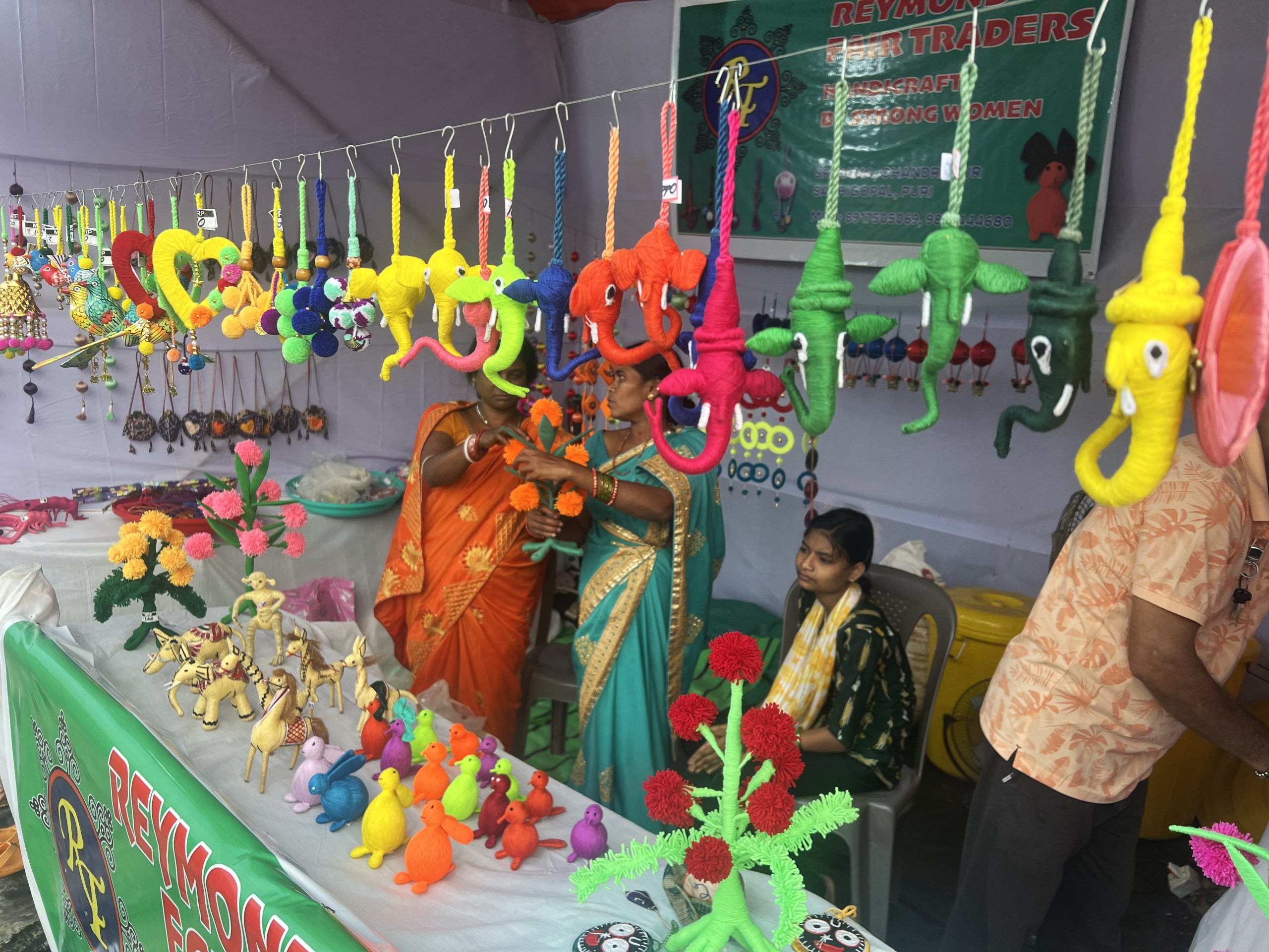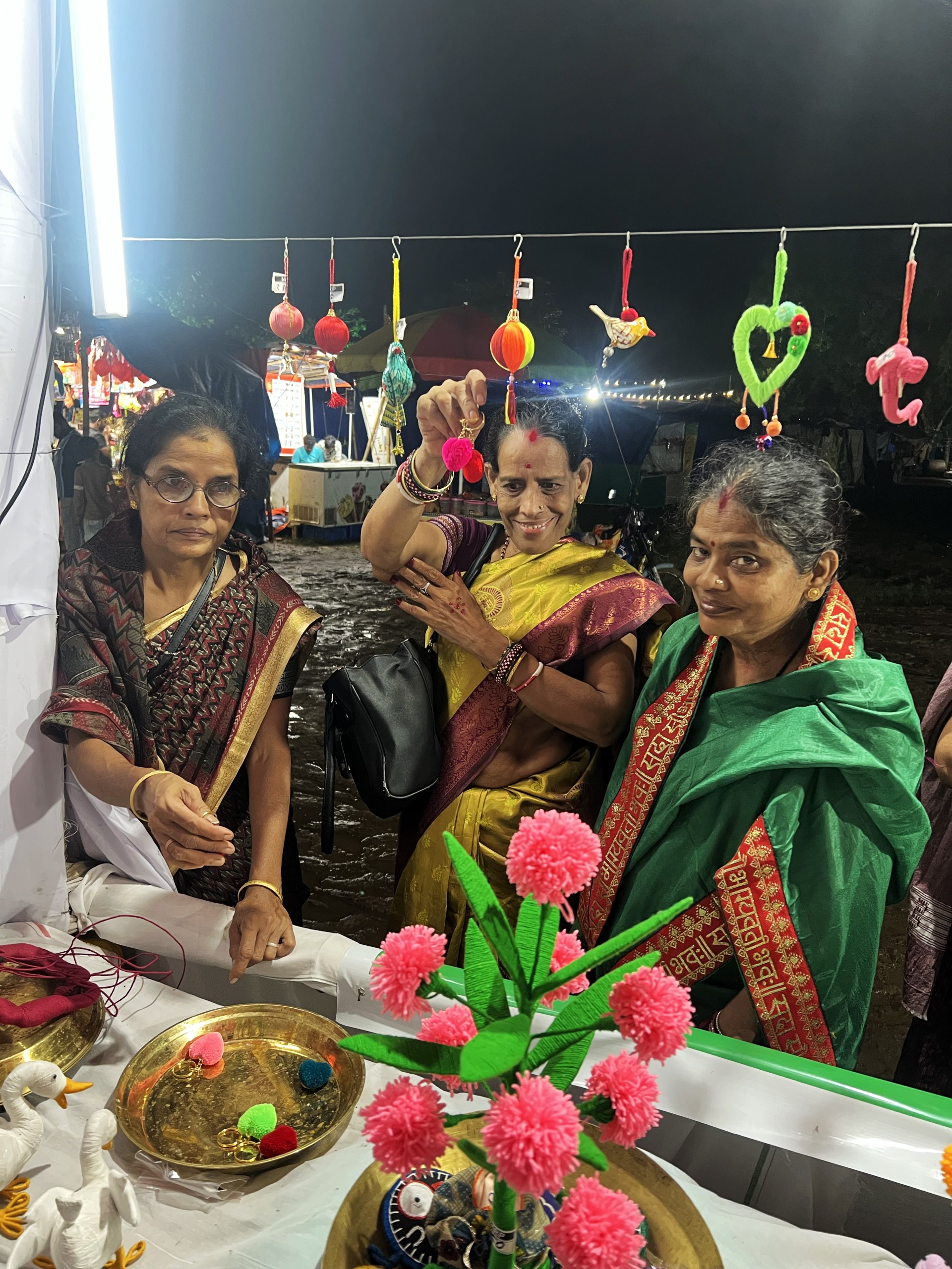 Eines der Ergebnisse aus dem Workshop mit Ulrike Reinhard war die Idee und der Wunsch am Event namens Anla Navami in Sakhigopal teilzunehmen. Nur am Tag des Radha Pada Darshan sind die Füsse der Göttin Radha sichtbar, daher pilgern mehrere tausend Menschen zum Tempel. Rund um diesen Tag findet ein grosser Markt, in Odisha "Mela" genannt, statt. Und genau dort haben die Frauen gemeinsam mit Pintu teilgenommen!