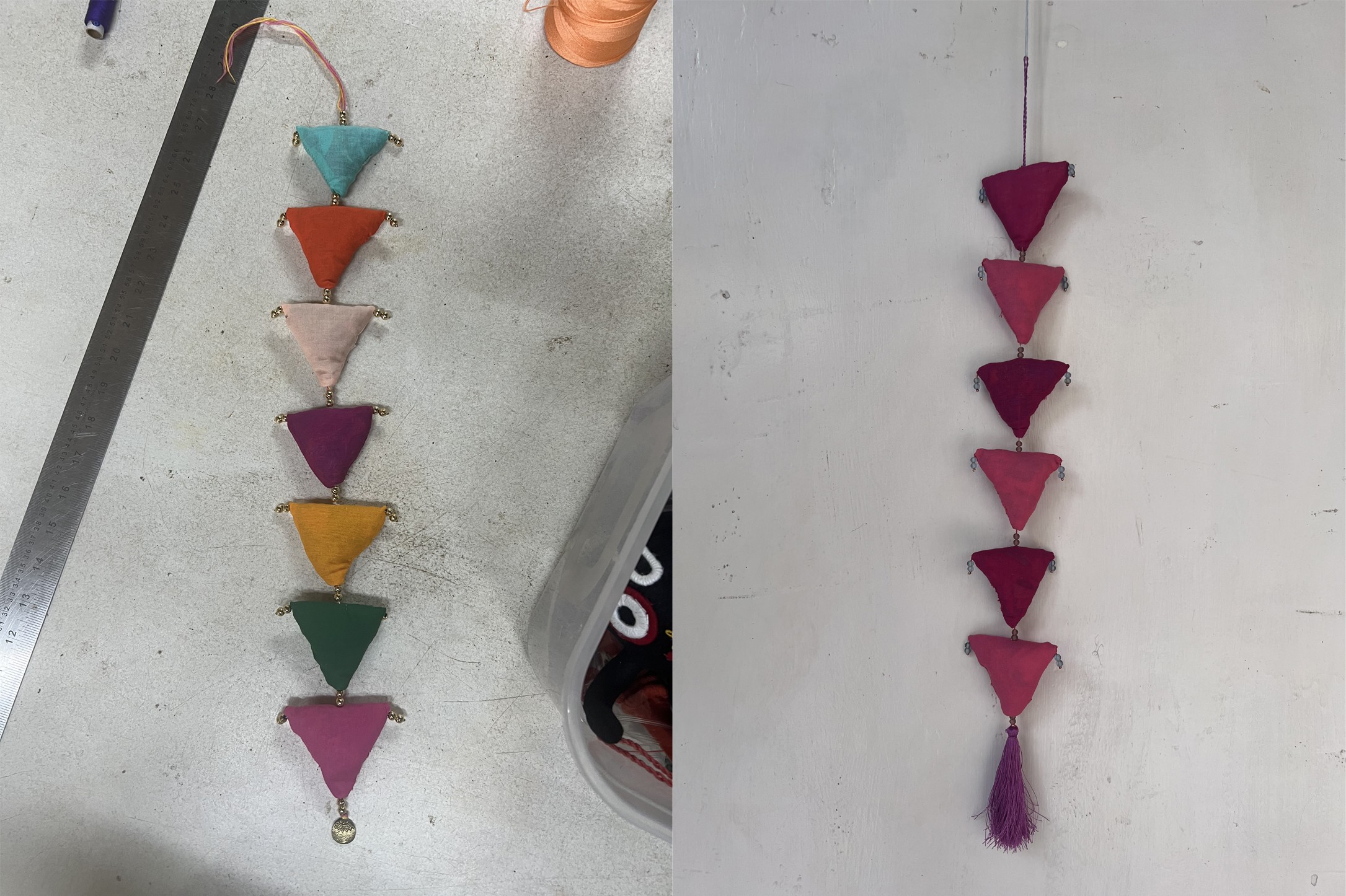 Zusammen haben Tiki Nani und Jill an einem ihrer Prototypen gearbeitet. Dieser gemeinsame Prozess war auch eine Möglichkeit, eine iterative Arbeitsweise exemplarisch zu üben. Es ging darum, zu zeigen, wie eine erste Idee durch das Ausprobieren verschiedener Varianten an Materialien, Techniken und Details verfeinert werden kann. Durch diesen Ansatz kann herausgefunden werden, welche Kombination am besten funktioniert.