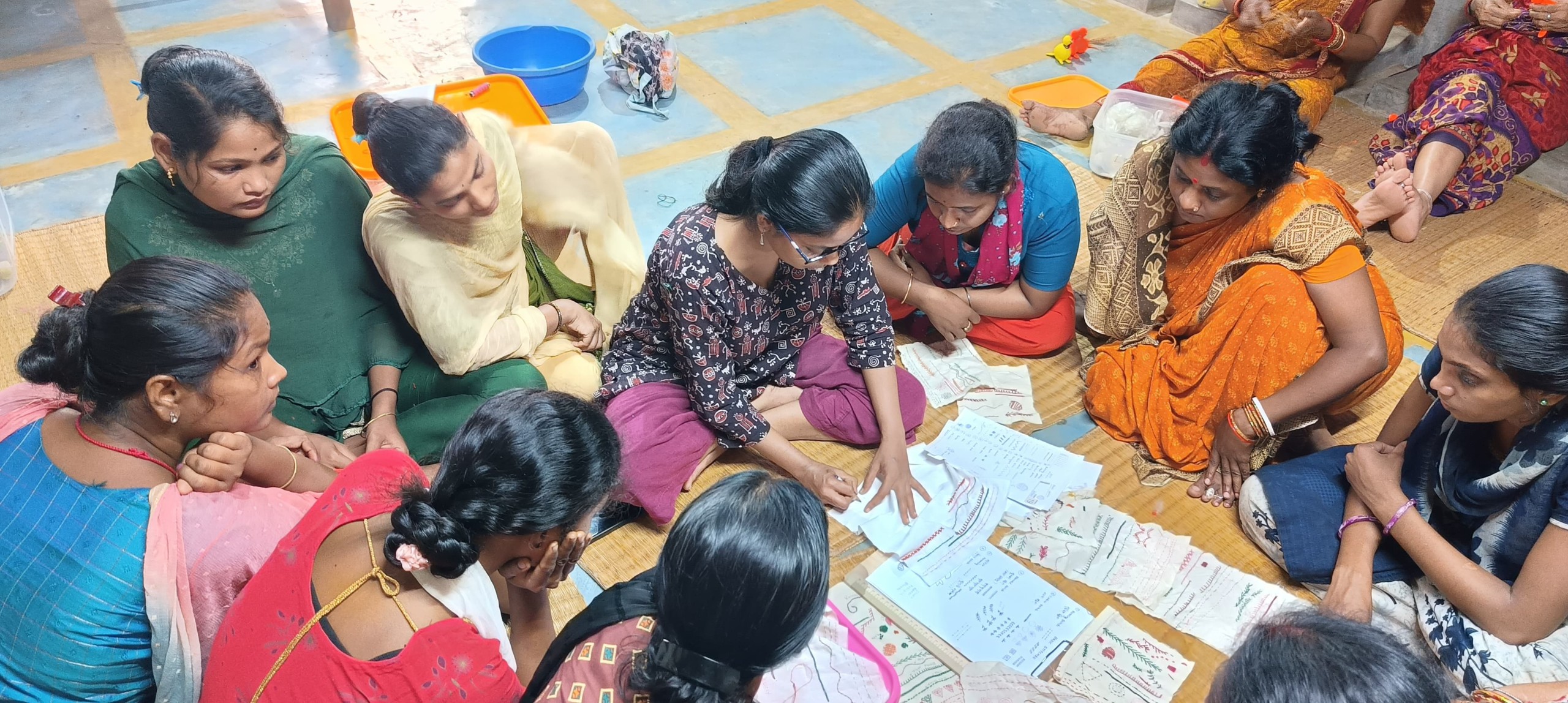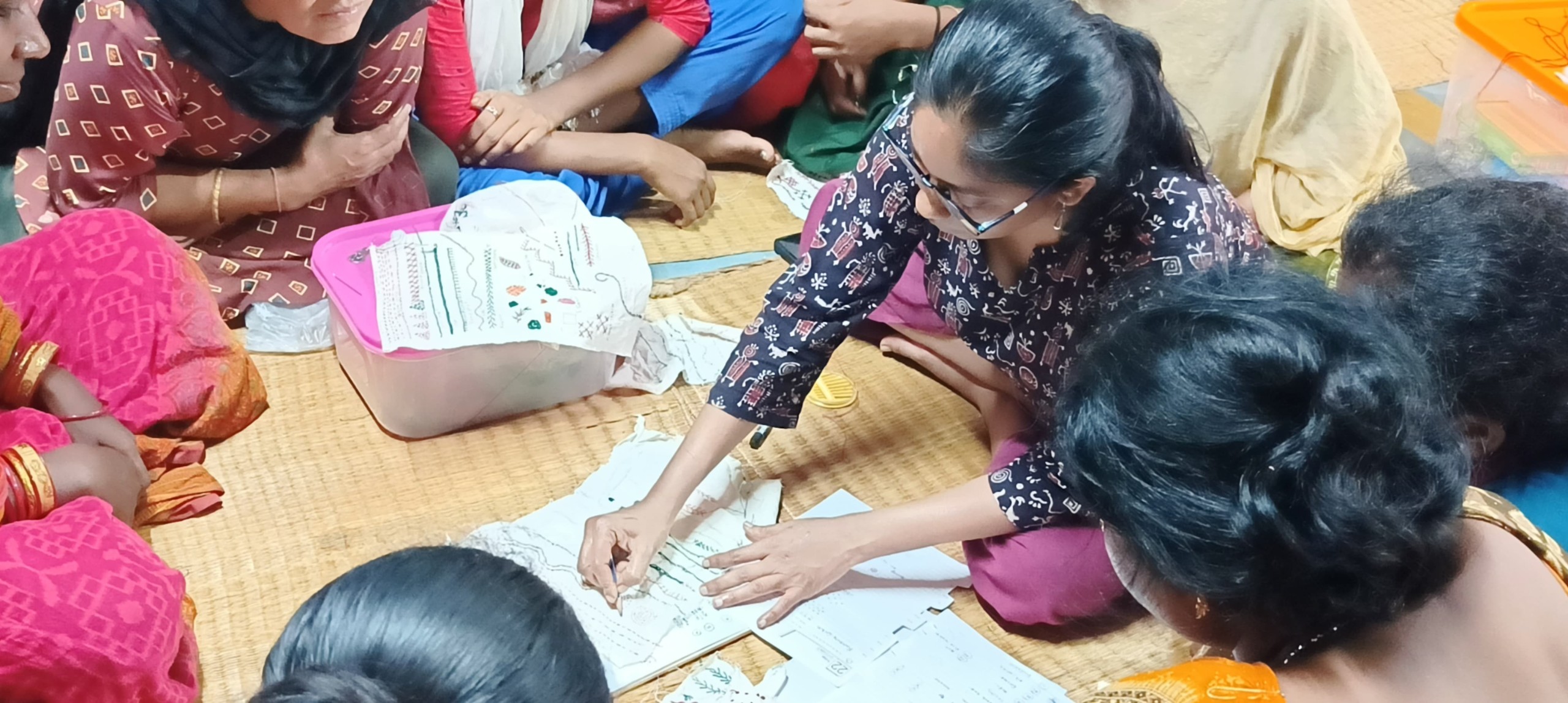 Da textiles Handwerk extrem vielseitig einsetzbar ist und auch ohne grosse Start-Investitionen auskommt, hatten wir schon länger im Sinn, der Frauengruppe im Stiftungshaus ein Training darin anzubieten. In Zusammenarbeit mit Pankaja und in Abstimmung mit den Interessen der Gruppe haben wir jeweils Monatsziele festgelegt. Die Skills sollten sowohl für allfällige zukünftige Bestellungen sinnvoll sein, aber auch privat nutzbar. So wurde im ersten Monat eine Stitch-Library erstellt.