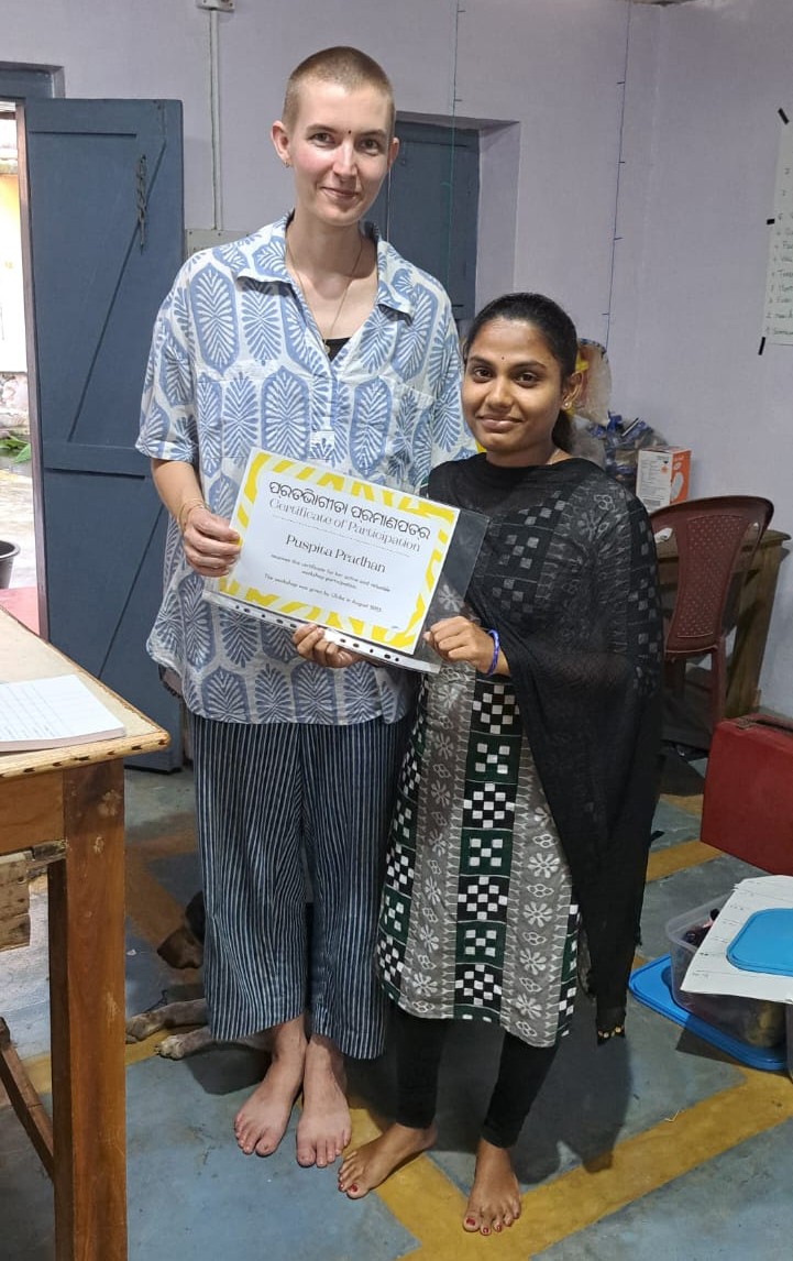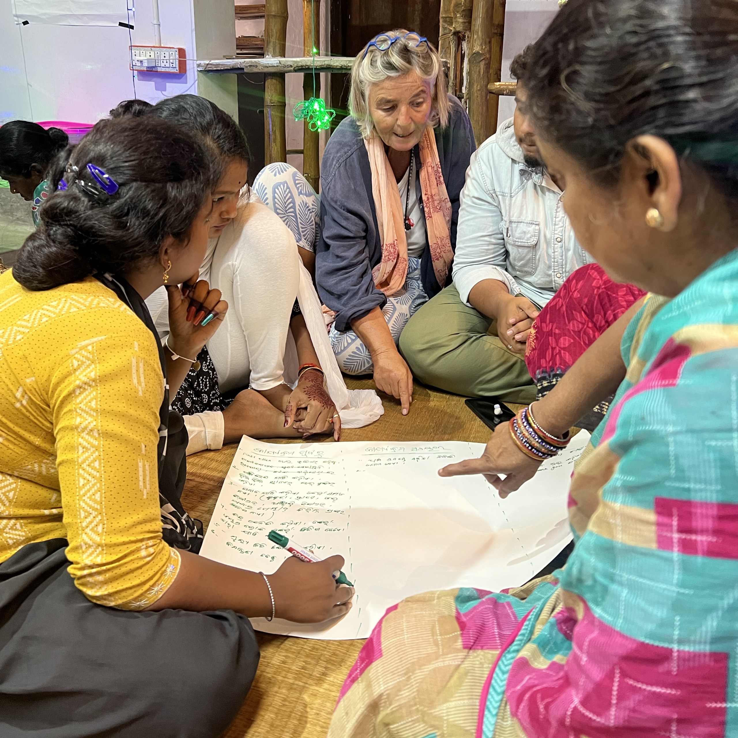 Beim Brainstorming welcher Verkaufskanäle in Frage kommen würden, stach eine Idee für alle heraus: Die Teilnahme am Markt während des Anla Nabami Festivals in Sakhigopal. Der Event findet jeweils Ende Oktober statt, dass heisst es blieben noch circa 6 Wochen für die Vorbereitung. Knapp aber machbar, besonders weil alle sich dafür begeistert haben! Daraus ergab sich dann auch der Fokus für die folgenden Workshop-Sessions: Die Vorbereitung des Events mit allem, was zu einem Markt dazugehört: Marketing, Produktentwicklung, Produktion, Gestaltung des Standes, Überlegungen zum Auftritt der Gruppe, Zahlungsabwicklungen, Finanzierung, Verkaufsvorbereitungen und so weiter.