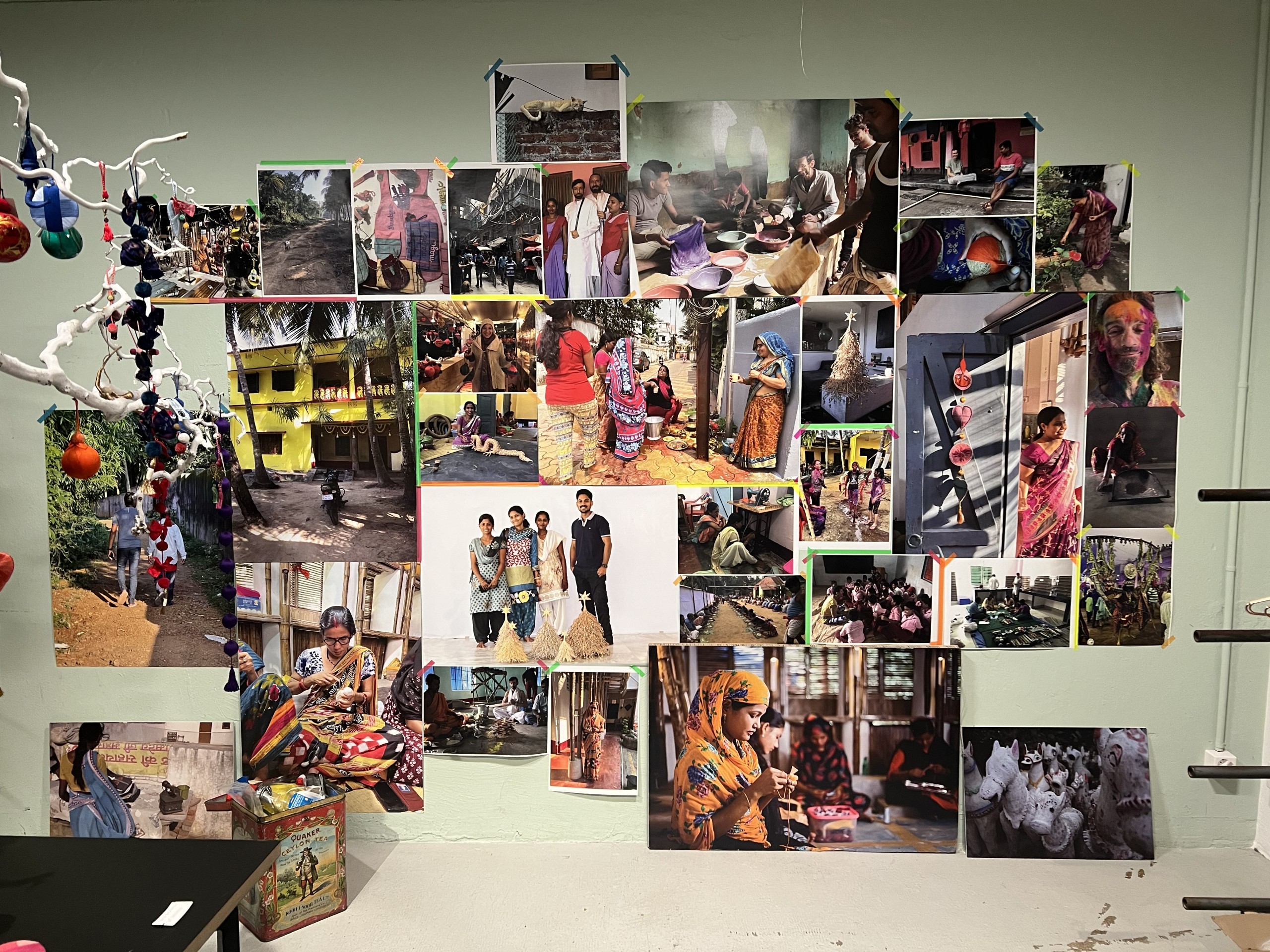 Mit großen Collagen an den Wänden erzählten wir die Geschichte von Real Time Trust und entführten die Besucher:innen nach Odisha. Ein Querschnitt durch die Stiftungsgeschichte wurde auch durch die ausgestellten Produkte sichtbar, die die Entwicklung unserer Arbeit widerspiegeln.