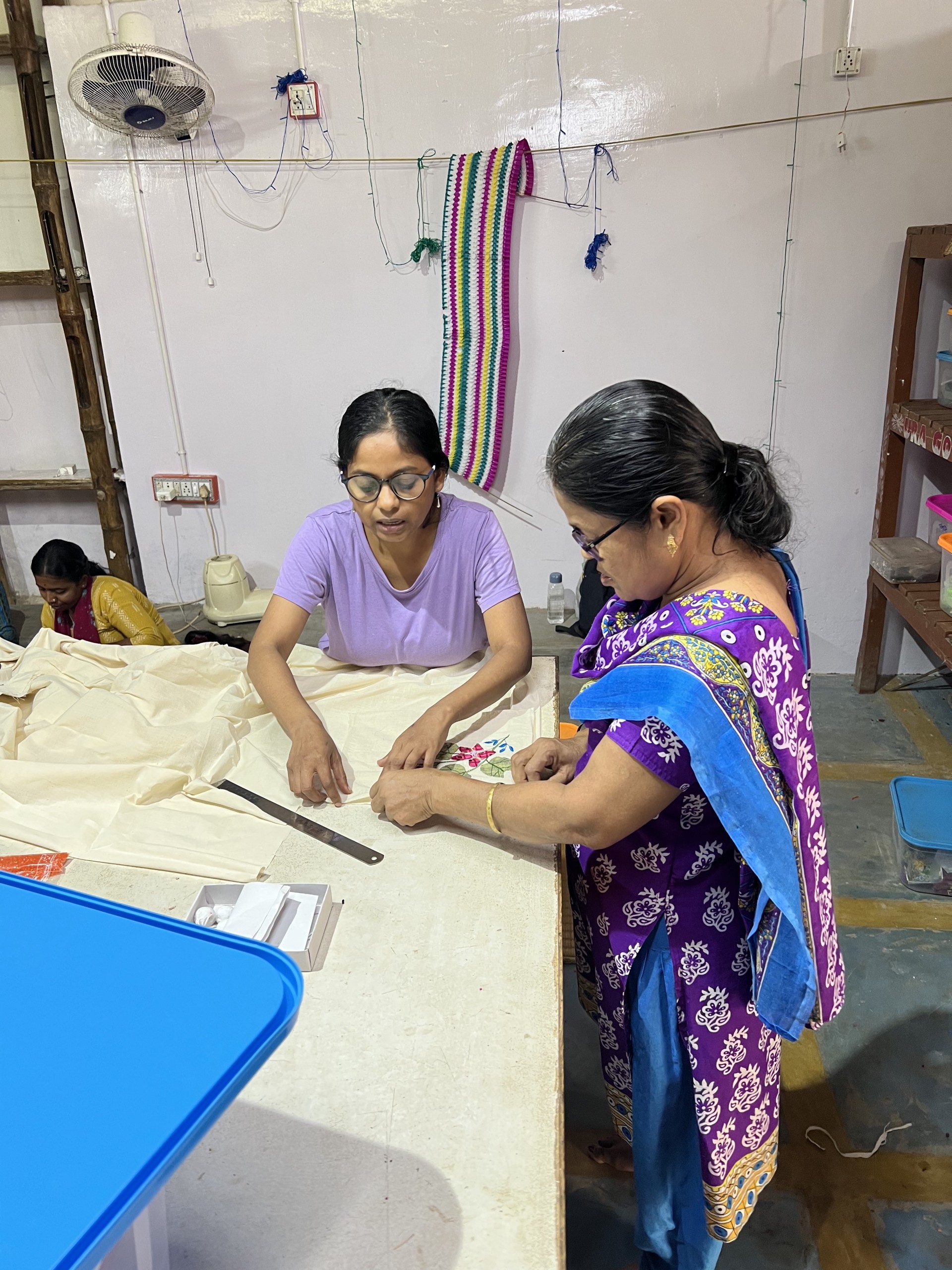 Pankajas Art, allen Menschen auf Augenhöhe zu begegnen ist unserer Erfahrung nach in Indien keine Selbstverständlichkeit. Ihr Schatz an Wissen und Erfahrung was die Zusammenarbeit mit Gruppen von Kunsthandwerker*innen angeht ist für uns unglaublich wertvoll. Einerseits was Hard Skills wie das Sticken und Nähen angeht, aber auch was die Reise der Gruppe in die Selbstständigkeit betrifft. Besonders für Jill ist der Austausch mit Pankaja eine grosse Hilfe und die frische Sicht von Aussen auf das Projekt hat bereits jetzt viel positives bewegt.